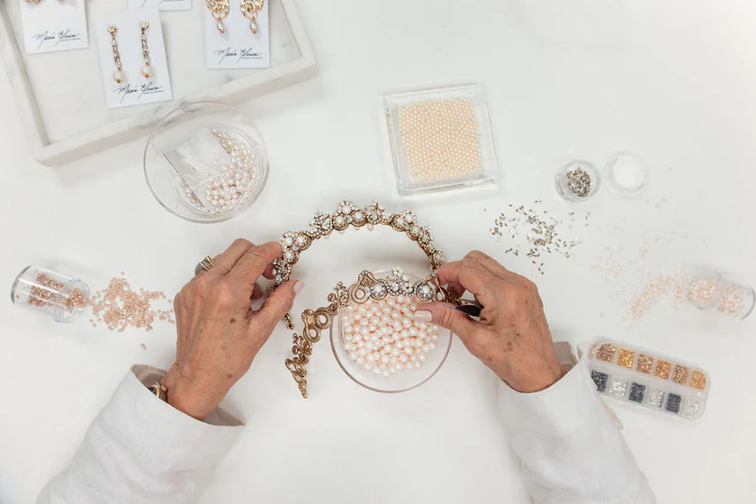The history of Maria Elena Headpieces is not just the story of a business, but the story of a family. Over a decade ago, Maria Elena created her very first headpiece as a mother’s gift to her daughter Marile to wear on her wedding day. This headpiece was not just an accessory, but was and is a precious family heirloom that will be passed down through the generations of their family.