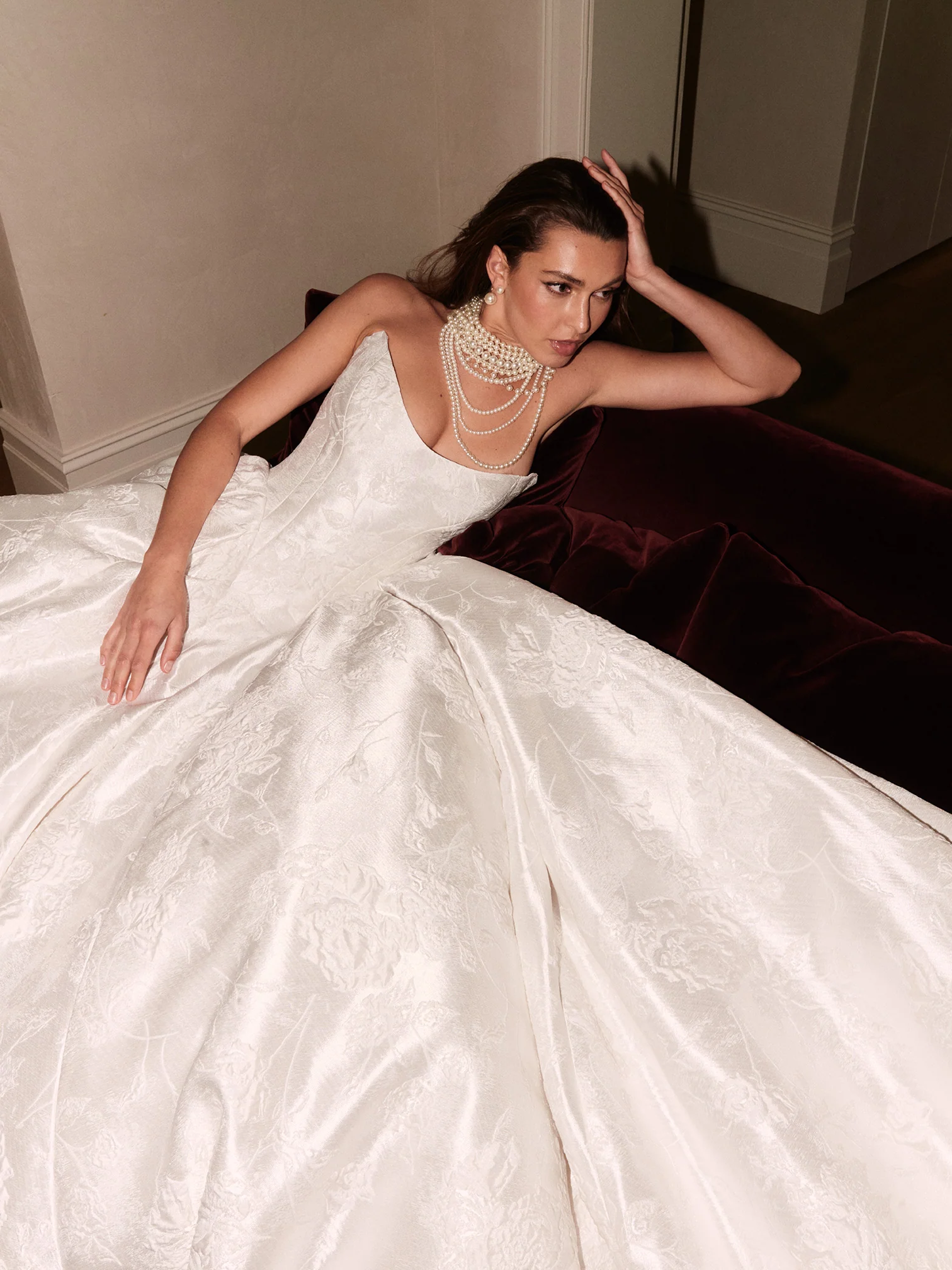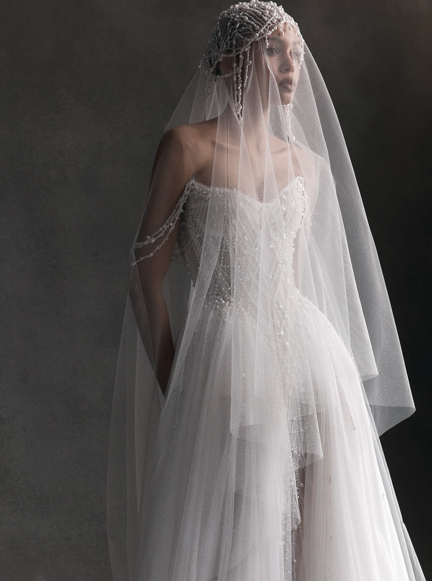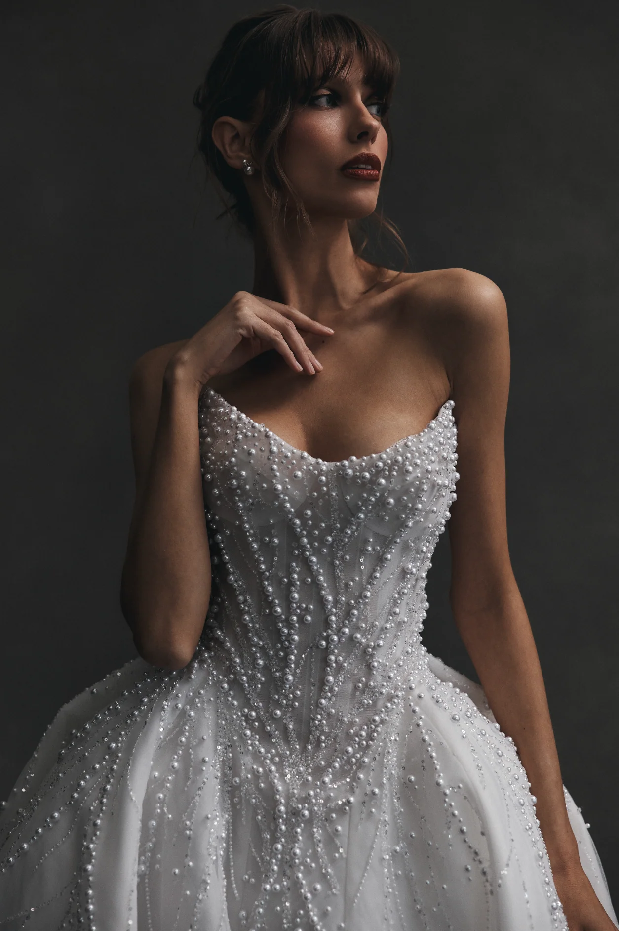 Rooted in the art of bespoke tailoring, Leah Da Gloria’s creations balance sleek, sculptural silhouettes with ethereal detailing. Her signature style enhances the female form with precision, pairing intricate embellishment with masterful construction. The result is an unmistakable sophistication — a blend of contemporary edge and classic allure.